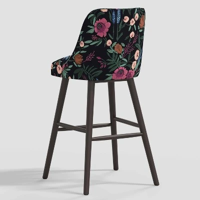 Freshen up your kitchen, dining space or home pub with the Geller Modern Counter-Height Bar Stool in Botanical from Threshold™. Built on a wooden frame with a black-finished look, this counter stool features a square, armless silhouette with a cotton-upholstered seat and a complementing ergonomic backrest, both featuring a floral pattern that adds botanical charm to your decor. Plus, the four tubular, flared legs accompanied by sleek foot rails offer better balance.